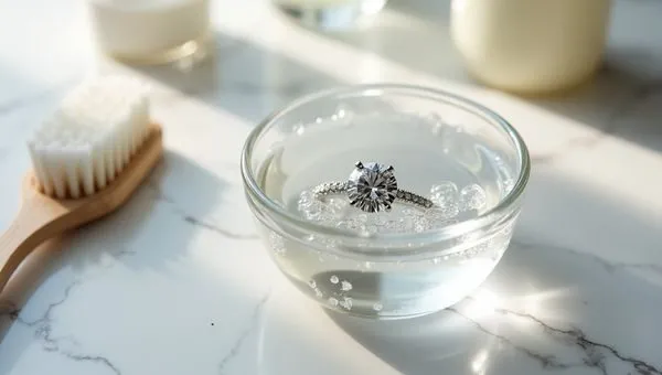 Ưu tiên dung dịch vệ sinh dịu nhẹ: Sự lựa chọn an toàn nhất cho đa số trang sức vẫn là nước ấm kết hợp với xà phòng hoặc nước rửa chén loại dịu nhẹ. Cách này giúp loại bỏ bụi bẩn và dầu mồ hôi mà không gây ảnh hưởng đến bề mặt kim loại hay đá.